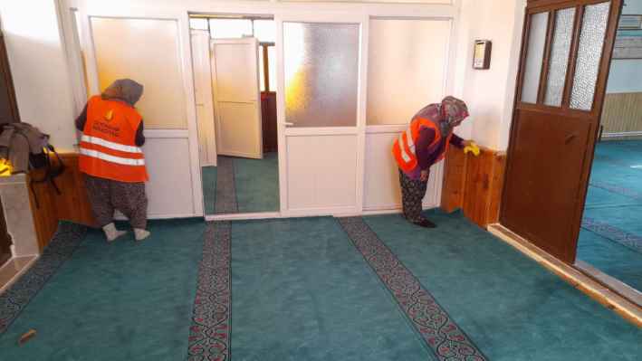 Vatandaşların daha temiz ve sağlıklı ortamlarda ibadet edebilmeleri için yürütülen çalışmalar kapsamında, ibadethanelerde genel ve kapsamlı bir temizlik yapılıyor.